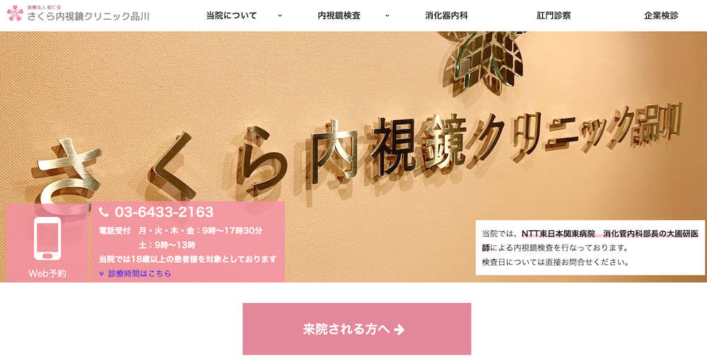 ピンクを基調とする優しい雰囲気のスタイリッシュなデザインのホームページです。胃・大腸内視鏡検査では専門医の方が担当しており、最先端の内視鏡システムを用いて検査されることが一目で伝わります。内視鏡検査の流れや料金もわかりやすいです。地域のホームドクターや通いやすいクリニックなどの特徴などが伝わり、親しみやすいウェブデザインとなっています。